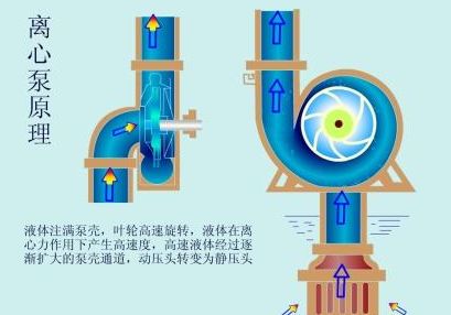 啟動前,泵殼和吸入管注滿水,然后啟動電機(jī)。泵軸驅(qū)動葉輪和水高速旋轉(zhuǎn)。水以離心的方式運(yùn)動并被拋到葉輪的外緣。水通過蝸殼泵殼的流道進(jìn)入泵的壓力管道。